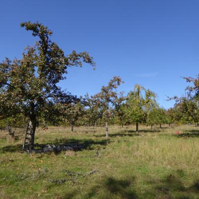 Unsere zwei Streuobstwiesen mit insgesamt 165 Bäumen befinden sich im Vertragsnaturschutz und werden von einem Freiwilligenteam (Obstbaumschnitt) und unserer vereinseigenen Schafherde gepflegt. Hier finden auch unsere alljährlichen Schnittkurse im Frühjahr und Sommer statt.